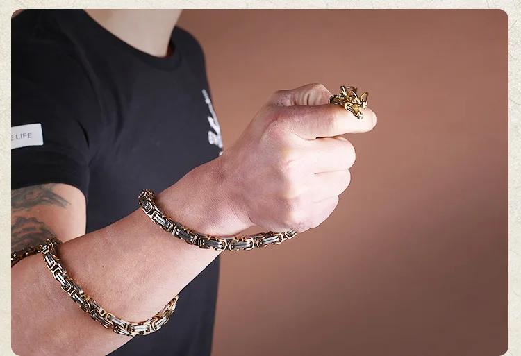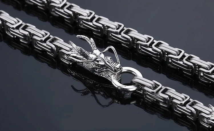 The Chain is made from titanium steel. The dragon head is made from brass.