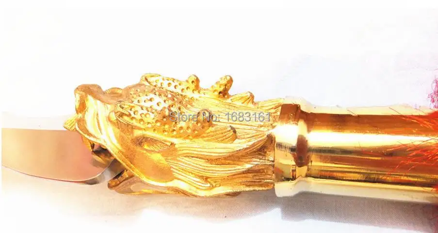The head is made from hand forged 2cr13 stainless steel. The fitting is made from solid brass with dragon head design. The sahft is made of solid hardwood. The shaft can be disassembled into 2 parts, easy and simple.